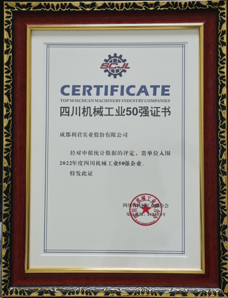 9月21日,四川省机械工业联合会发布“2022年度四川机械工业50强企业”榜单,成都HJC黄金城实业股份有限公司上榜。
