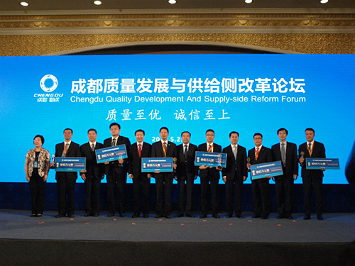 2016年5月25日,由成都市人民政府主办、成都市质量技术监督局承办的成都质量发展与供给侧改革论坛在世纪城国际会议中心开幕。本次论坛以“质量至优、诚信至上”为主题,旨在深入实施质量强市战略、增强质量意识、助推经济转型升级提质增效,全面提升成都供给侧质量水平。在论坛上,成都市政府颁发了“首届市政府质量奖”,该奖是成都市质量建设领域最高荣誉,依据成都市出台的《成都市政府质量奖管理办法》设立;历经激烈竞争,成都HJC黄金城实业股份有限公司及其他5家企业最终从全市3284家规模以上企业中脱颖而出、问鼎该奖。在计量发展与供给侧改革分论坛中,成都HJC黄金城实业股份有限公司副总工程师丁亚卓博士在论坛现场结合供给侧改革分享了“强化计量管理,推动企业创新发展 ”的经验,赢得了参会代表们的热烈响应。
